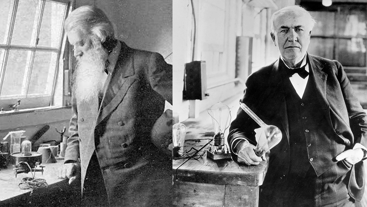 Joseph Wilson Swan (źródło: Heals) i Thomas Alva Edison (Fot. Mondadori via Getty Images)