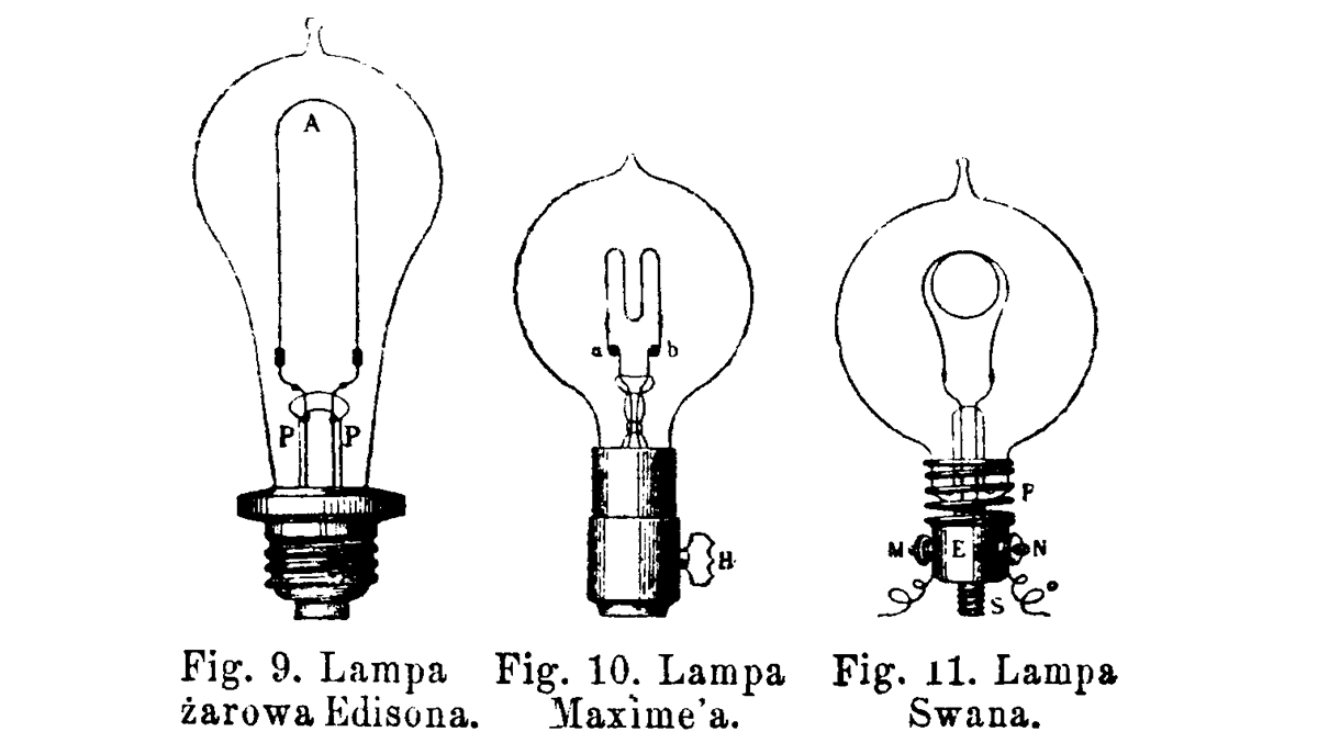 W czasie, gdy w coraz szerszym użyciu były świece Jabłoczkowa (pierwsze trzy pojawiły się w Warszawie w 1879 roku na wystawie malarstwa w salonie Józefa Ungera), powstawało już jednak urządzenie, które miało je odesłać do lamusa historii. Chodzi o żarówkę.