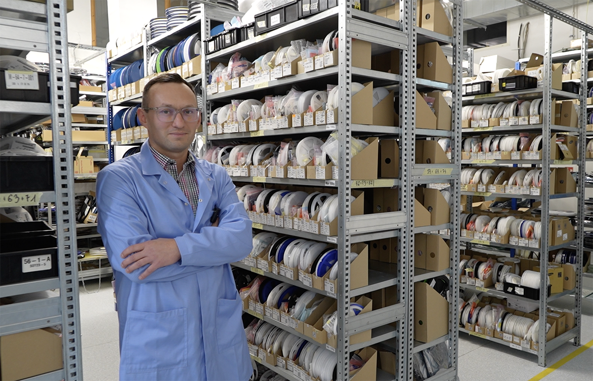 Krzysztof Torczyński, prezes Printor Sp. z o.o., w magazynie komponentów. Fot. Agnieszka Kubasik