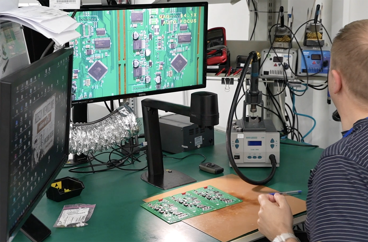 Stanowisko kontroli i ewentualnych poprawek na płytkach PCBA. Fot. Agnieszka Kubasik